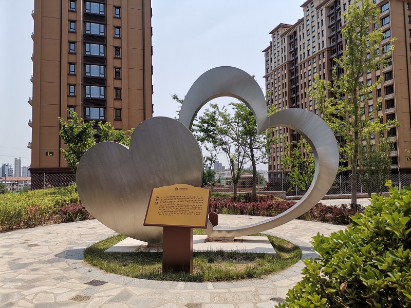 蓬莱居佳领海银婚园雕塑景观 304不锈钢材质,高3.9米。2019年11月制作安装。