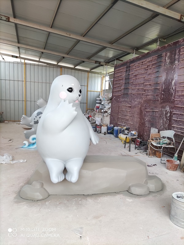 烟台蓬莱长岛形象大使斑海豹一组 玻璃钢雕塑 2021制作