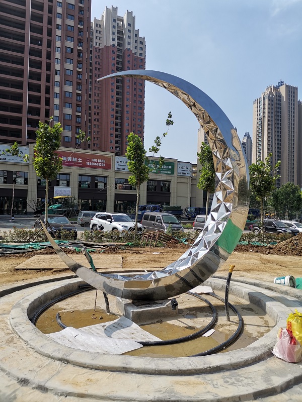 烟台不锈钢雕塑  烟台山水龙城 商业街   304镜面不锈钢雕塑  昌林雕塑2022年制作安装